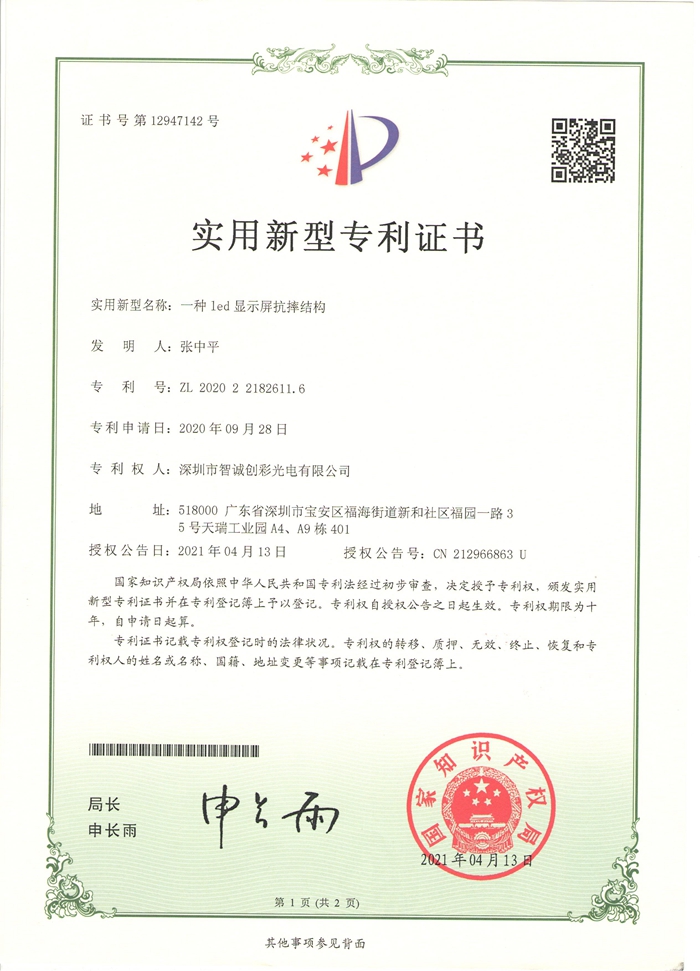 您當(dāng)前位置:主頁  > 資質(zhì)證書  > 一種LED顯示屏搞摔結(jié)構(gòu)