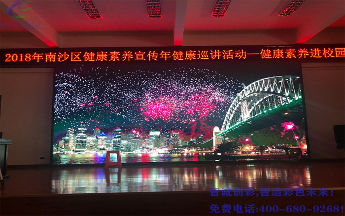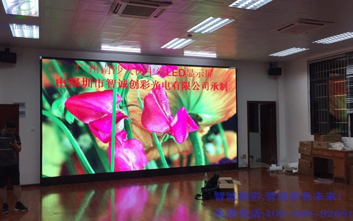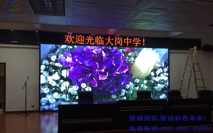 > 廣州南沙大崗中學室內P2.5全彩屏